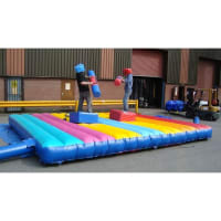 Can't help it but... “Contenders ready? 3…2...1… Go!” Originally made famous by the TV show ‘Gladiators’ this is a guaranteed hit at any event. Two players face-off on opposite podiums and battle it out to knock one another off, using giant pugil sticks... landing on our 18ft square inflatable bed!