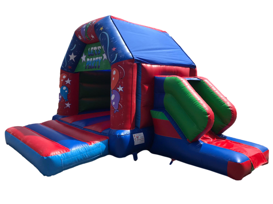 Come and bounce, then slide off the side of our Bounce & Slide Lets Party castle!