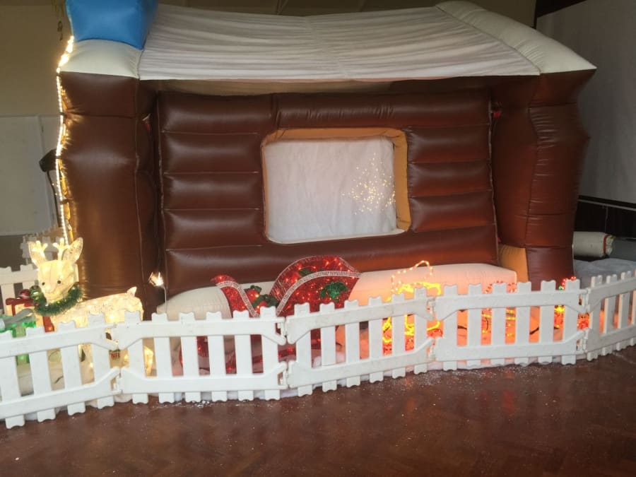 For your ultimate magical Christmas, why not hire Santa’s inflatable grotto with basic, traditional theming of Santa’s chair, slippers and snug, a traditional setting outside his door complete with a snowy setting, fencing and a Christmas tree or character but rather than a snowy setting outside Santa’s door,