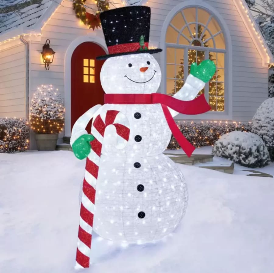 Introducing the 8ft Pop-Up Snowman, the perfect addition to your festive decorations! This jolly snowman stands tall at 8ft and comes with a charming candy cane, adding a touch of whimsy to your garden or outdoor space.