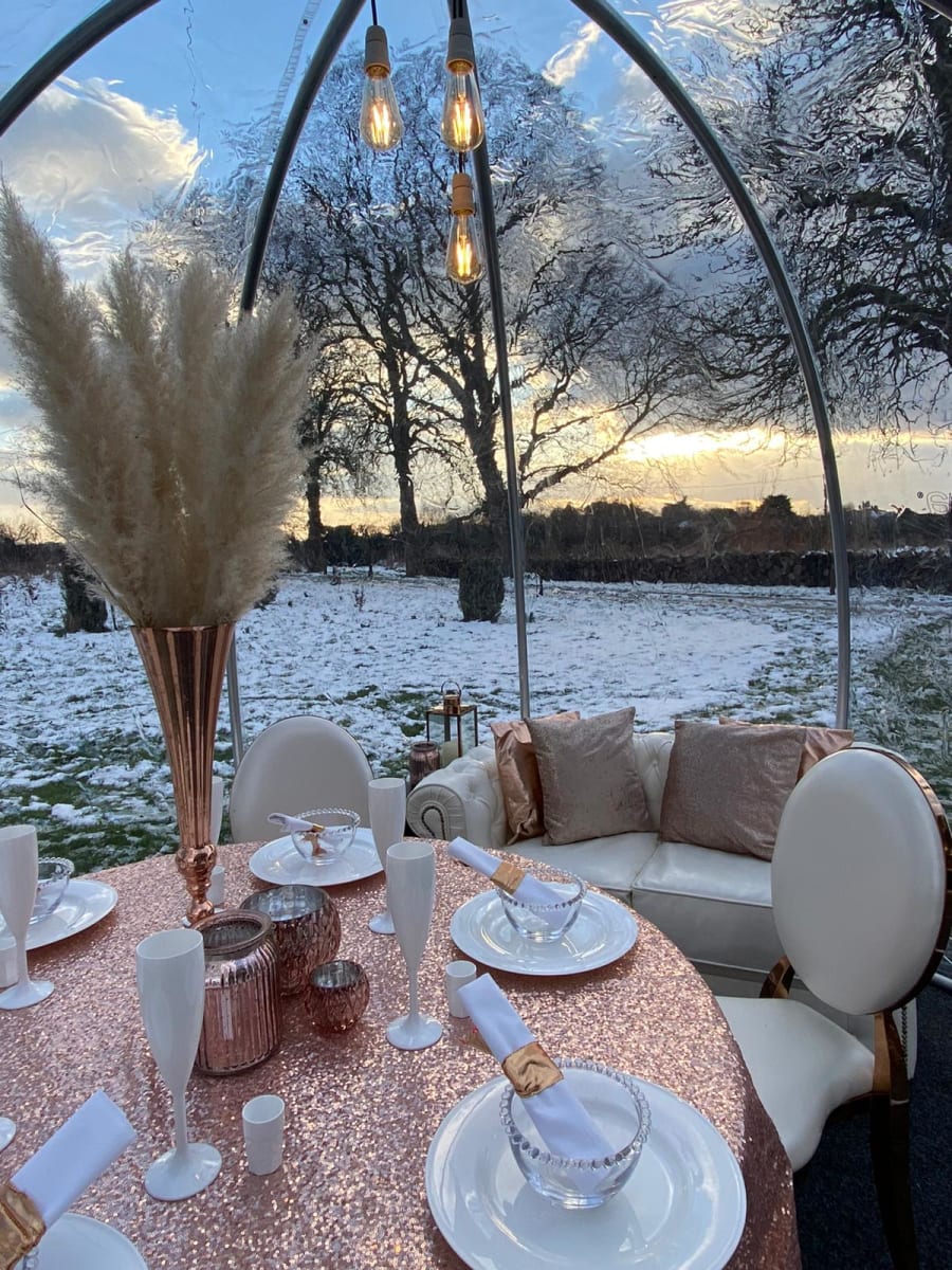 Enjoy a romantic meal, or celebrate with friends in our luxury warm Sky Dome, from the comfort of your very own back garden you can enjoy a night in with friends, but outdoors with our clear pvc Sky Dome.