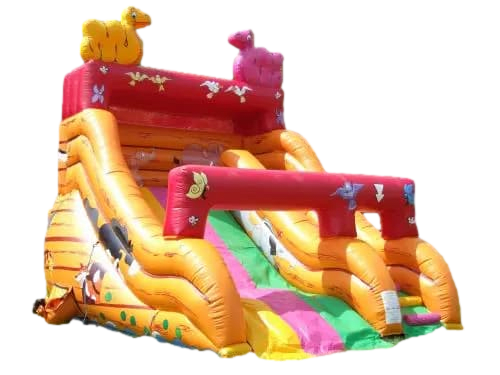 🌍 Ready for a wild ride? The Safari Slide is here to bring the untamed excitement of a safari adventure right to your event! Whether you're hosting a school event, a backyard BBQ, or a community fete, this inflatable slide guarantees endless fun and laughter. Featuring vibrant artwork and stunning 3D snakes, your guests will be captivated by the friendly animals adorning this colorful slide.