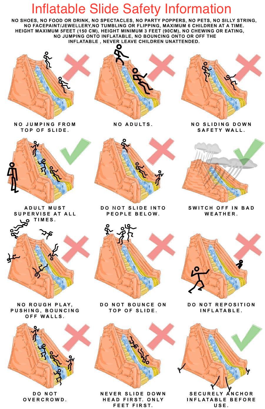 - It is the hirer’s responsibility to ensure the space is suitable for the hired inflatable. If we arrive and find the space not to be suitable for any reason such as the area is not big enough or the space is unsafe, then it will still be the hirer’s responsibility to pay in full.